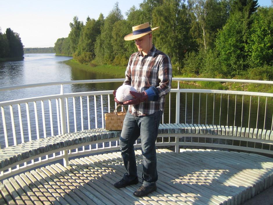 Seuran puheenjohtaja Jouko Arvola esittelee ja haastattelee kylmän kiven heittäjää, Jaakko Holtinkoskea Sanginjoelta. Hän oli edellisen kerran heittänyt kylmän kiven 7 kuukauden ikäisenä isänsä avustuksella, mutta muisti oli niin heikko ettei enää muistanut itse tapahtumaa.