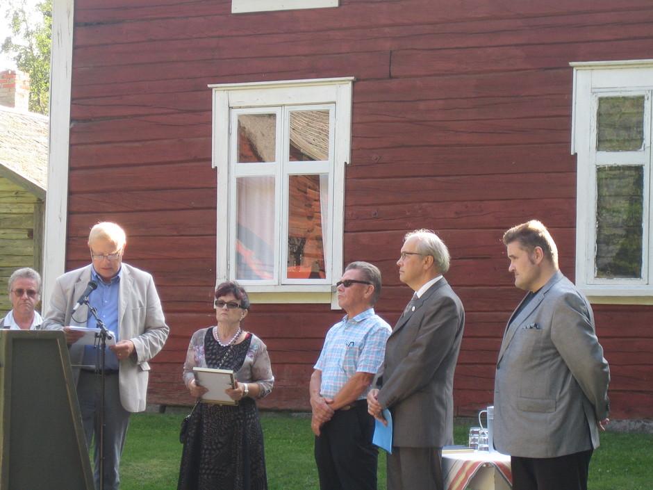Seuran puheenjohtaja Jouko Arvola, varapuheenjohtaja Pirjo Karhu ja sihteeri Pentti Juutinen luovuttivat kunniaplakaatit tämän vuoden tervaneuvoksille: johtaja Jaakko Jouselle, emeritusprofessori Jouko Vahtolalle ja Kamarineuvos, FM Markus H.Korhoselle.