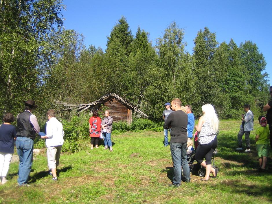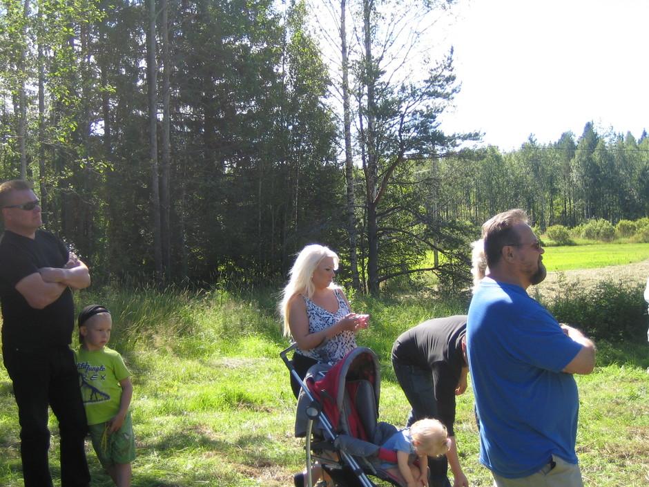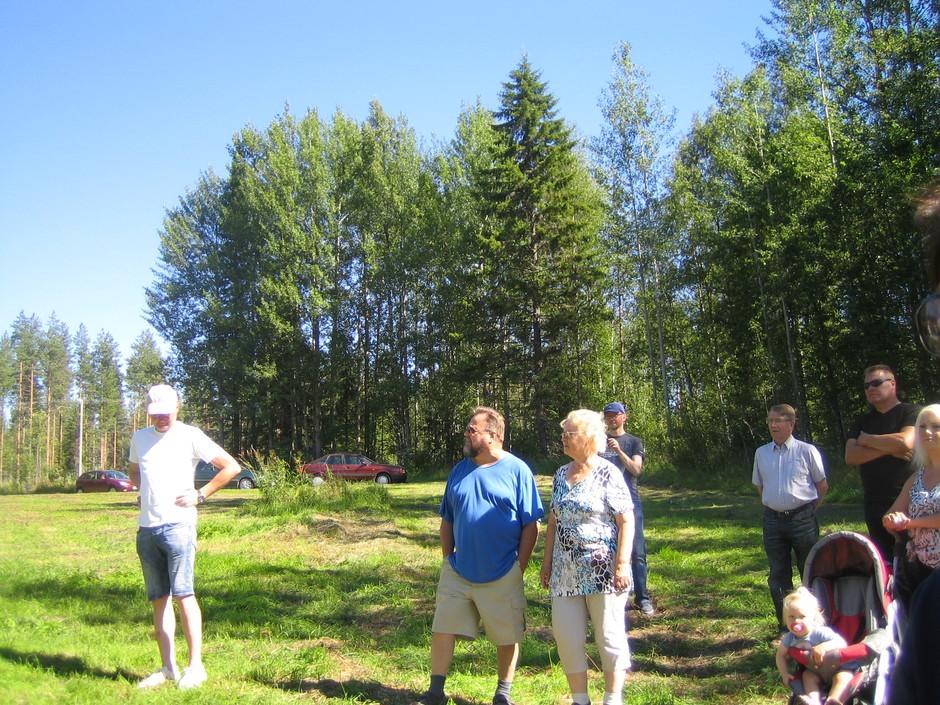 Yleisö joukossa myös maan nykyinen omistaja Jaska Holtinkoski perillisineen ja muita kyläläisiä