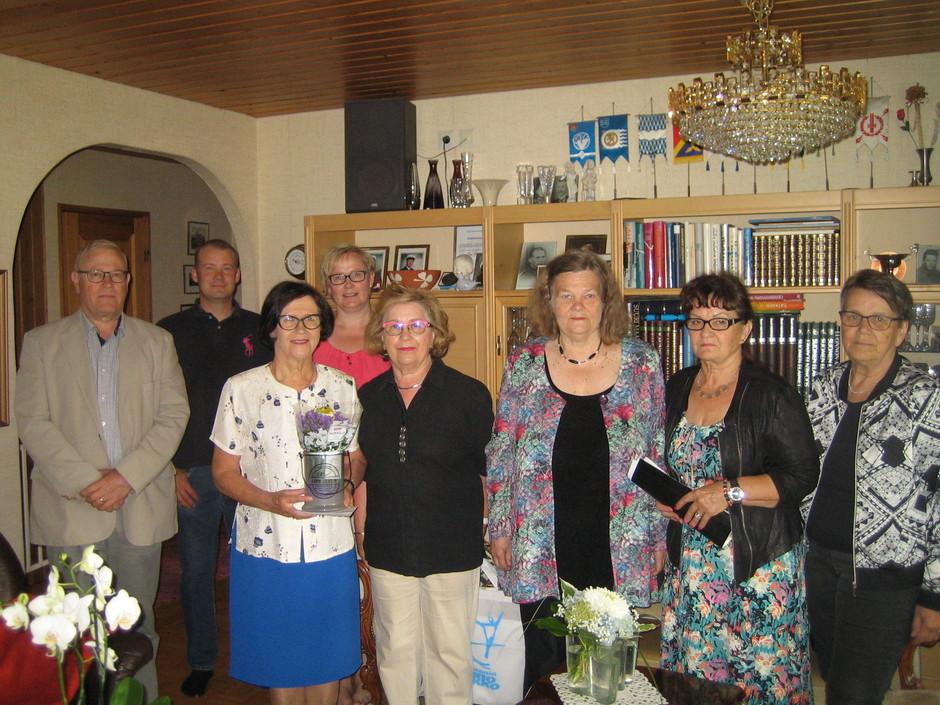 Pirjo Bastmanin 70-vuotisjuhlissa Jouko Arvola, Antti Ruuttunen, Hanna Kinnula-Yliluoma, Kaija Melamies, Marketta Perälä, Pirjo Karhu ja Elise Lujala