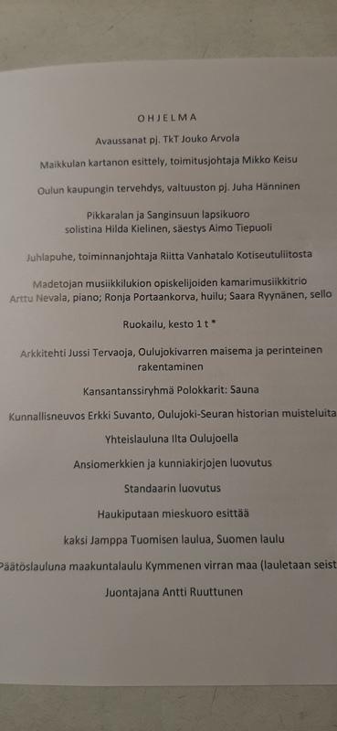 Oulujokiseuran 55-vuotisjuhla ja Jaakonpäiväjuhla Turkansaaressa