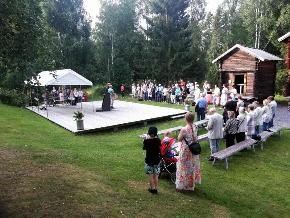 Ennen juhlan alkua juotiin pihamaalla Osuuskauppa Arinan tarjoamat pullakahvit